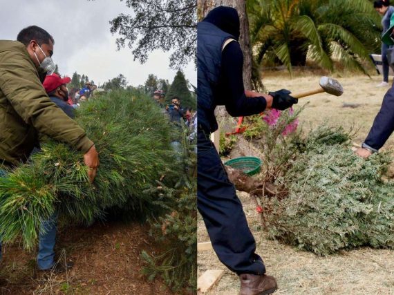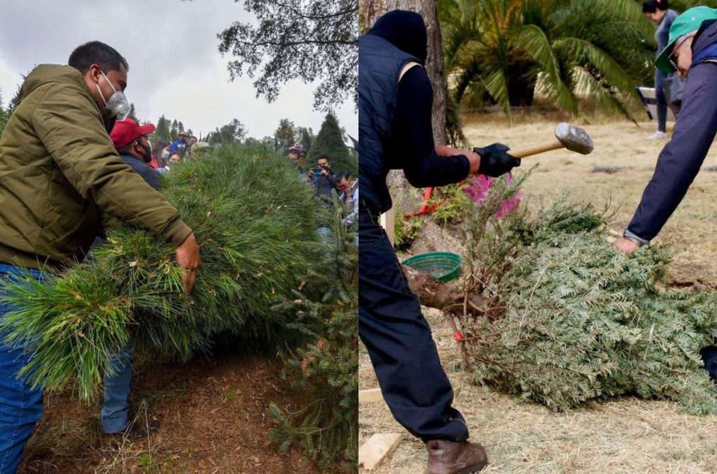 Hasta mediados de febrero, los centros de acopio de árboles de Navidad operarán de la mano de la Sedema y el gobierno de la CDMX. Fotos: Cuartoscuro y Sedema.