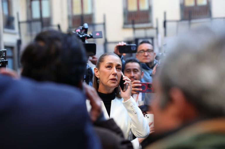Durante la conferencia mañanera de hoy, la presidenta Claudia Sheinbaum y todo el grupo de periodistas fueron sorprendidos en Palacio Nacional con el sismo de 6.5. Foto: Pablo López/Tabasco Hoy.