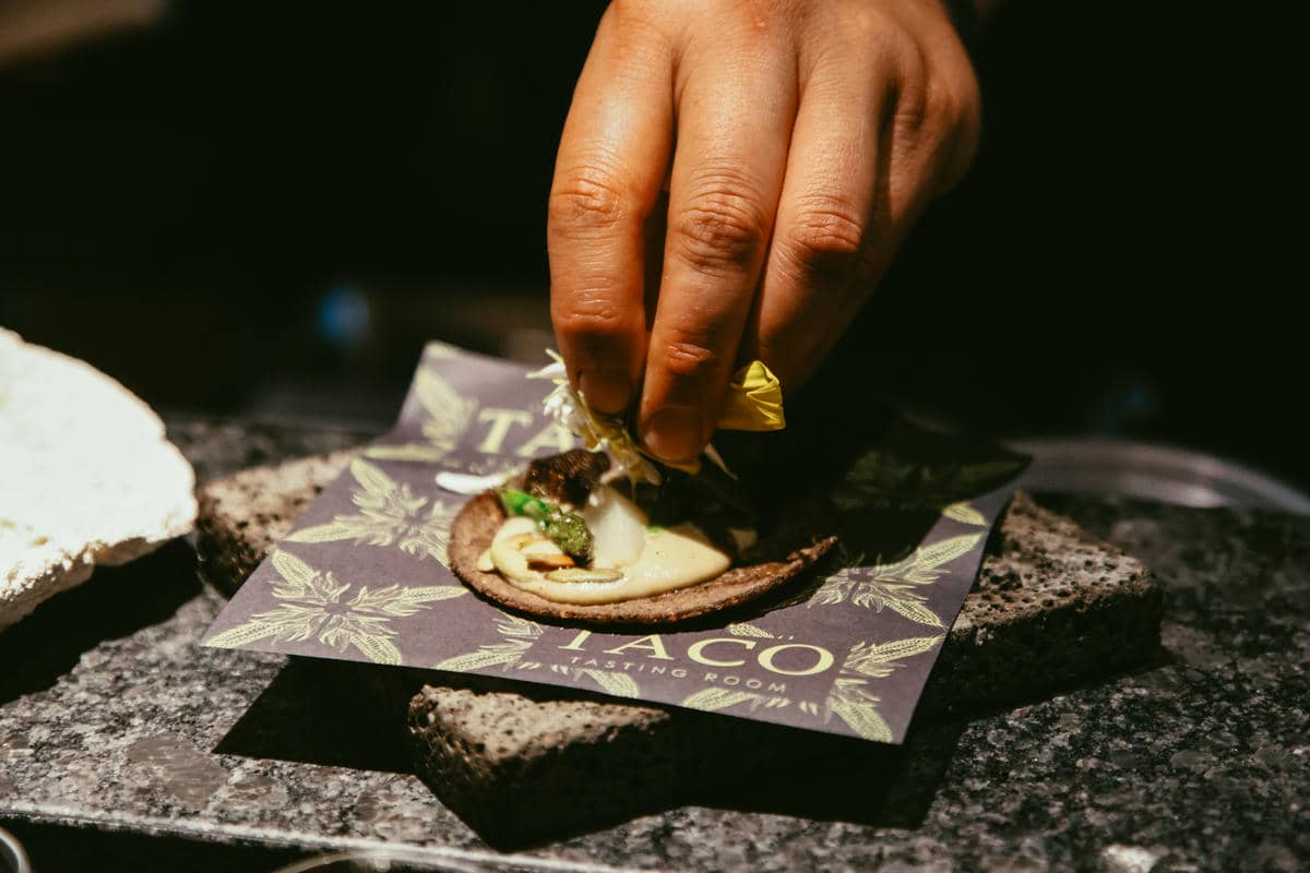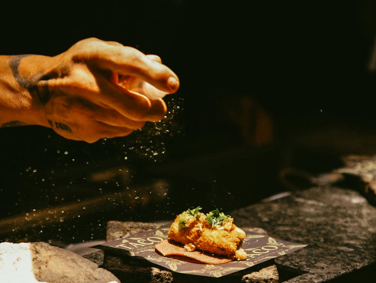 Cuando suena La Chona, la barra entra en modo celebración. Es el momento en el que se sirven shots de Tequila G4, convirtiéndose en un ritual compartido que ya es parte esencial de la experiencia Taco Tasting Room.